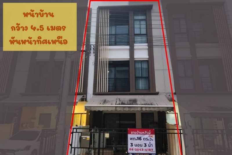 มีแอร์ 4 ตัว หันหน้าทิศเหนือ หน้าบ้านกว้าง 4.5 เมตร