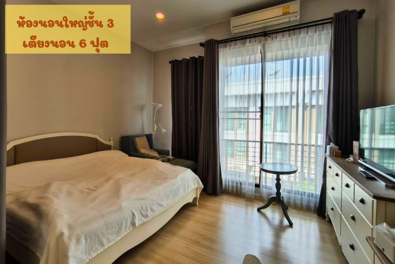 ชั้น 3 แอร์ 1 เครื่อง เตียงนอน 6 ฟุต เก้าอี้โซฟา โคมไฟ ชั้นวางทีวี โต๊ะวางทีวี โตีะเครื่องประดับ ตู้เสื้อผ้า 3 ประตู