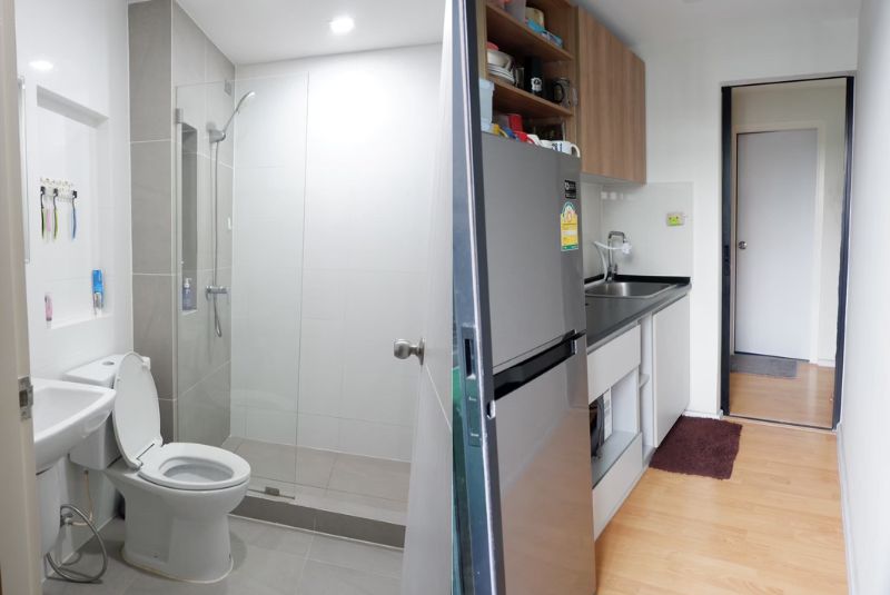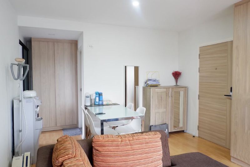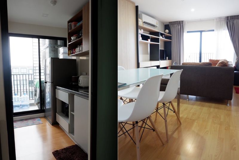 คอนโดมิเนียม คอนโด ดีมูระ รัชโยธิน D’Mura Ratchayothin2 ห้องนอน 1 ห้องน้ำ โซนห้องครัว มีระเบียงยาวห้องมุมขนาด 53.64 ตร.ม พร้อมเฟอร์นิเจอร์บิ้วอิน โต๊ะทานอาหาร, โซฟา, เครื่องใช้ไฟฟ้าแอร์, ตู้เย็น, เครื่องซักผ้า, ไมโครเวฟครบ