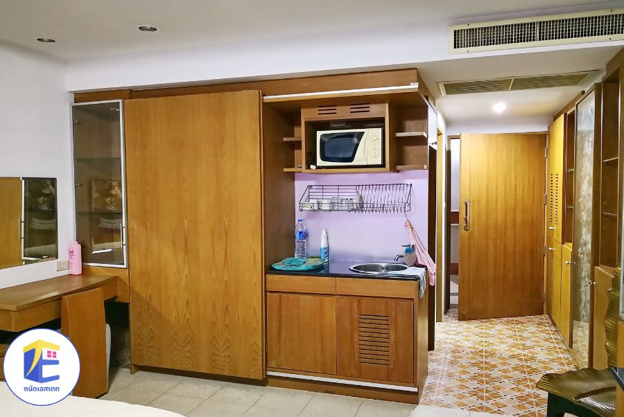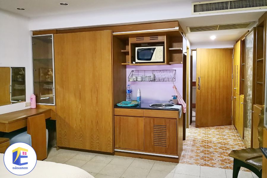 การตกแต่ง: เฟอร์นิเจอร์บิลท์อิน, ครัว, เคาน์เตอร์บาร์, แอร์ 1 เครื่อง (พร้อมเข้าอยู่)