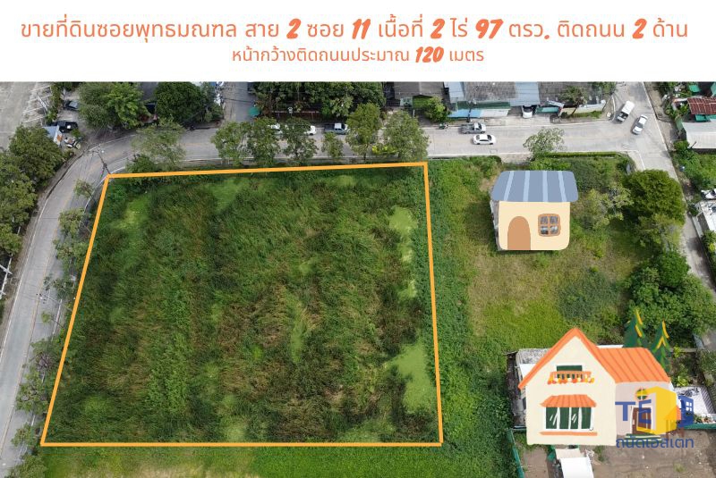 TEL0033 - ที่ดินซอยพุทธมณฑล สาย 2 ซอย 11 เนื้อที่ 2 ไร่ 97 ตารางวา ติดถนน 2 ด้าน