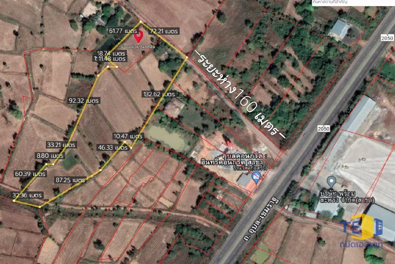 TEL3006 - ที่ดินตระการอุบลฯ เนื้อที่ 10 ไร่ 358 ตร.ว. ( 2 โฉนด ) หน้ากว้างติดถนนคอนกรีต 70 เมตร