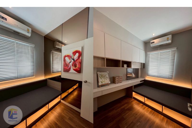 ห้องหนังสือในฝัน: เจ้าของเป็นคนรักการอ่าน จึงทำ "ห้องสมุดส่วนตัว" ไว้ที่ชั้น 2 บรรยากาศเงียบสงบ เหมาะสำหรับนั่งทำงาน (Wfh) หรืออ่านหนังสือพักผ่อน (สามารถปรับเป็นห้องนอนที่ 3 ได้สบายๆ)