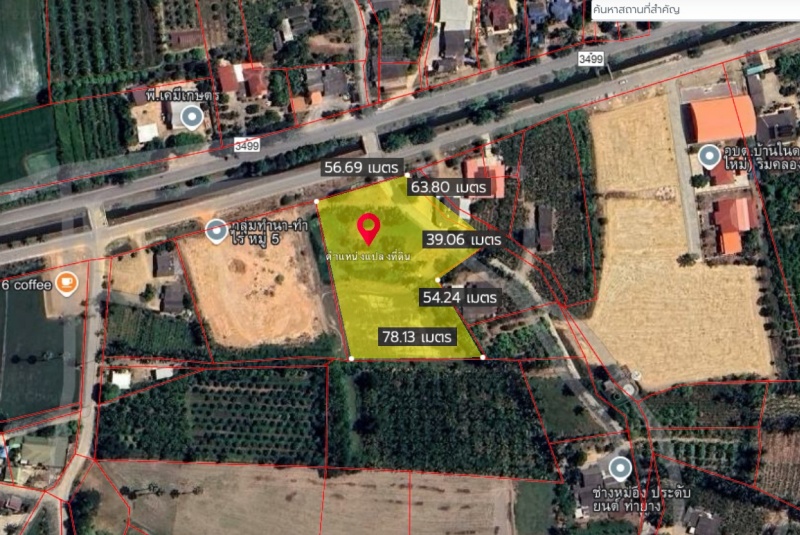 - ขนาด: 4 ไร่ 2 งาน 64 ตารางวา หน้ากว้าง 56 เมตร ลึก 100เมตร